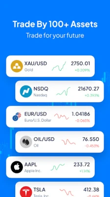 Comprehensive Asset Selection: Trade a wide range of assets including Stocks & Indices (Tesla, Amazon, S&P 500, NASDAQ), Metals (Gold, Silver), Commodities (Brent Oil), Forex (EURUSD, USDJPY, GBPUSD), and more.