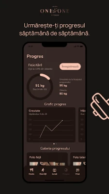 Aplicația îți permite să urmărești îndeaproape progresul prin fotografii comparative, măsurători și grafice intuitive care te ajută să îți menții motivația ridicată.