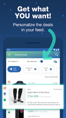 • Follow interests like electronics, food, fashion, streaming services, gift cards, VPNs, and more