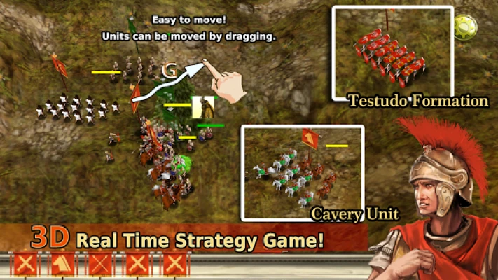 A real-time strategy game based on events from the Gallic Wars.(Rome) Over 100 different friendly and enemy units launch a fearsome battle onscreen. Several dozen unique units (swordsman, spearman, etc), along with actual military commanders from history!