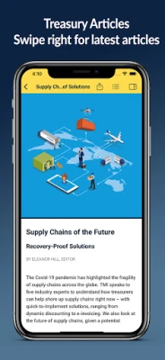 This app includes the very latest issue of Treasury Management International (TMI) magazine and other recent treasury articles and TMI editions.