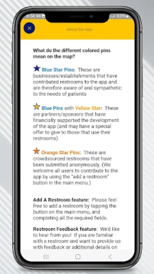 This app also provides education and resources for those looking for IBD support and information, and information on the status of restroom access legislation in each state.